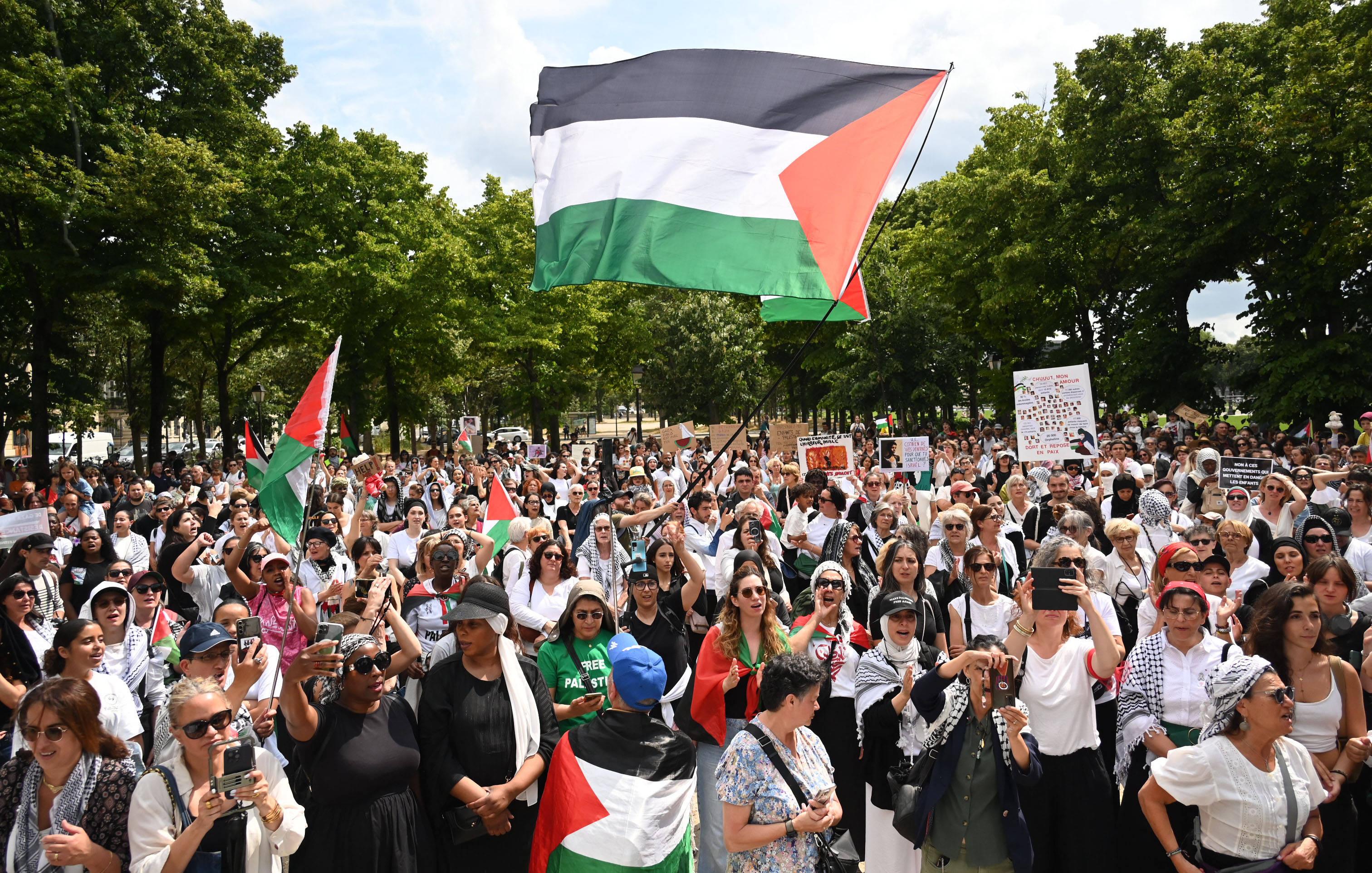 2025-06-17 23:48:06 - Samedi 14 juin, une nouvelle manifestation de soutien à la cause palestinienne s’est tenue à Paris. Alors que l’Iran et Israël sont entrés en guerre il y a quelques jours, des personnes ont jugé bon de distribuer des drapeaux iraniens à la manifestation.
